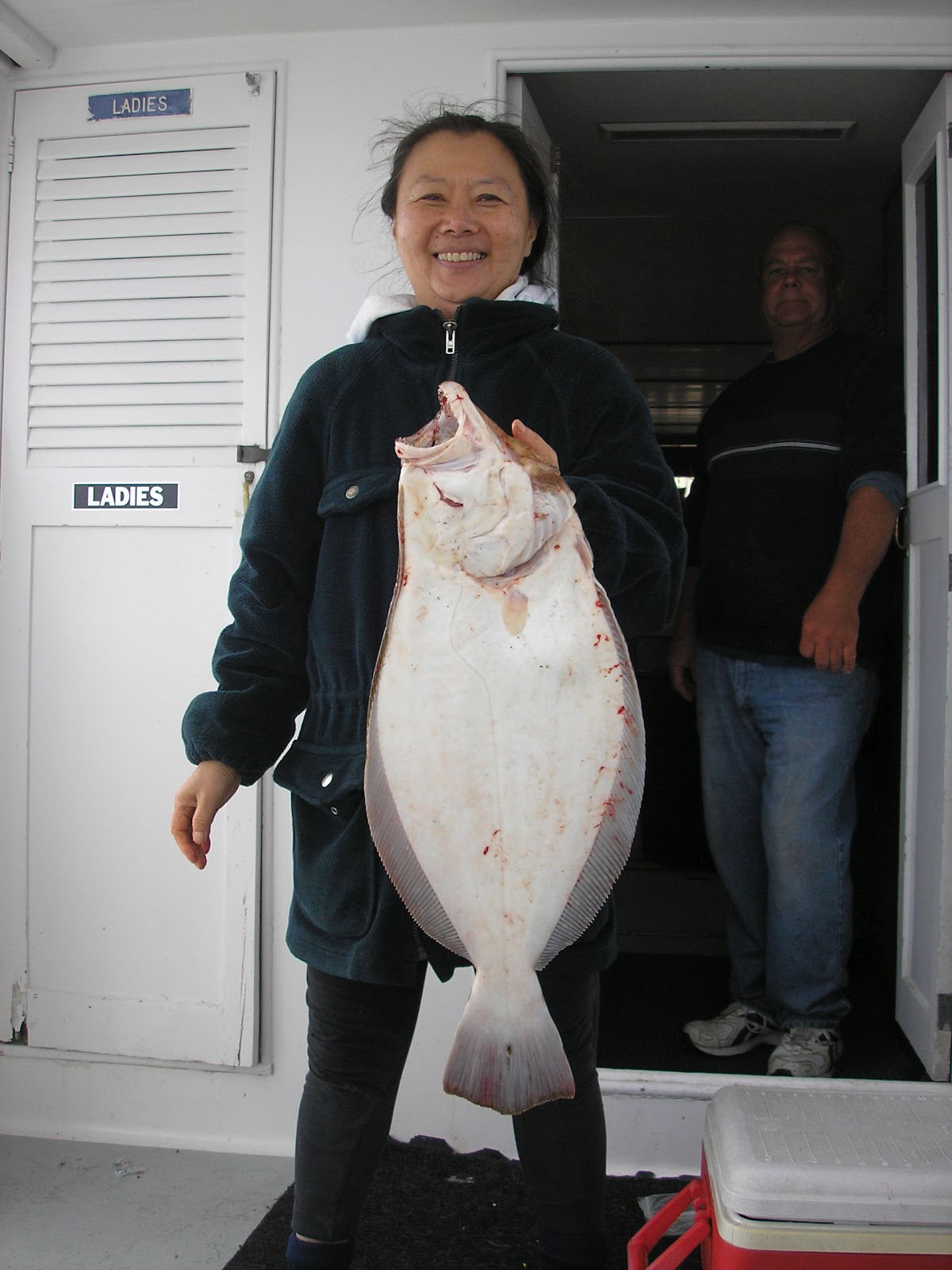 Have not posted since opening day since the fishing (catching) has slowed a bit and we did not sail a few trips due to the weather and lack of participation. I believe the cool weather this week had an effect on more fish moving in so the same areas that hold the fish are getting hit hard. We did manage a few beauties along with the keepers and shorts we are catching this week, like Doc's almost 9 lber that his partner Grace is holding, guess he is camera shy. Also on yesterday's afternoon trip Dave Fenandez caught a 6 lb 2 0z flattie on the end of the last drift of the day. But not big enough to beat Joe Wavro's 9lb 8 oz pool winner and our biggest so far this season. Tuesday does not look good this week but we are still trying to go every day, so hope to see you soon.